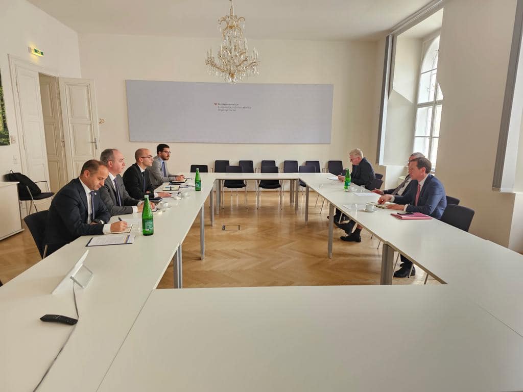 Konsultimet politike mes Ministrive të Punëve të Jashtme u mbajtën në Vjenë dhe u udhëhoqën nga Zëvendësministri i Punëve të Jashtme dhe Diasporës, Kreshnik Ahmeti, dhe i Dërguari Special për Ballkan Perëndimor nga Ministria Federale për Evropë dhe Punë të Jashtme, ambasadori Johannes Eigner.