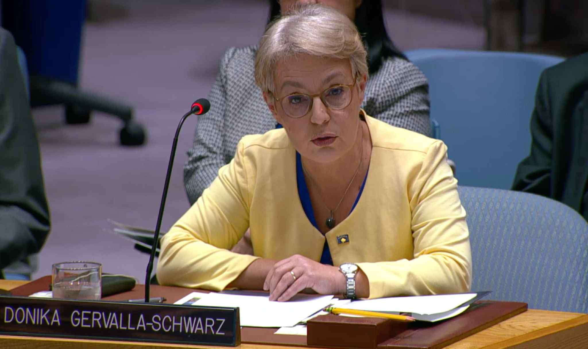 Zëvendëskryeministrja dhe Ministrja në detyrë e Punëve të Jashtme dhe Diasporës, Donika Gërvalla, në fjalën e saj para Këshillit të Sigurimit të Kombeve të Bashkuara, paraqiti të arriturat e Republikës së Kosovës në forcimin e demokracisë, zhvillimin ekonomik dhe sundimin e ligjit, të cilat janë konfirmuar nga organizatat dhe institucionet më të besueshme ndërkombëtare.