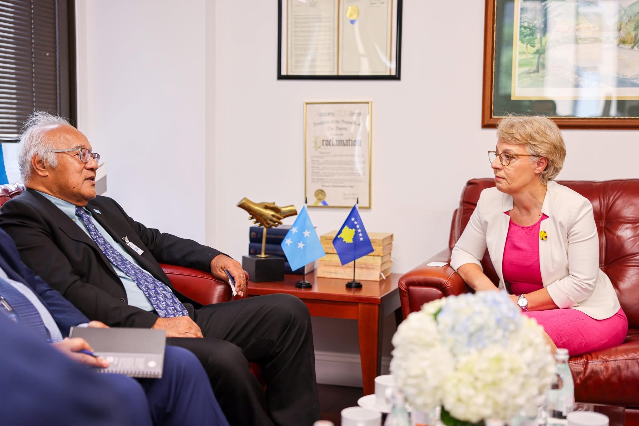 Zëvendëskryeministrja dhe Ministrja në detyrë e Punëve të Jashtme dhe Diasporës, znj. Donika Gërvalla, në ambientet e Konsullatës së Republikës së Kosovës në Nju Jork, zhvilloi një takim me Ministrin e Jashtëm të Mikronezisë, z. Lorin S. Robert.