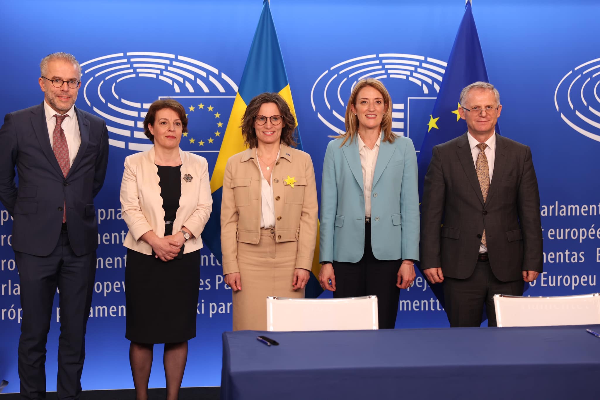 Nënshkrimi i aktit ligjor që zyrtarizon heqjen e vizave për shtetasit e Republikës së Kosovës për udhëtim në vendet e Schengenit u realizua nga Presidentja e Parlamentit Evropian, znj. Roberta Metsola dhe Ministrja për Evropë e Suedisë znj. Jessika Roswall, si kryesuese e radhës e BE-së.