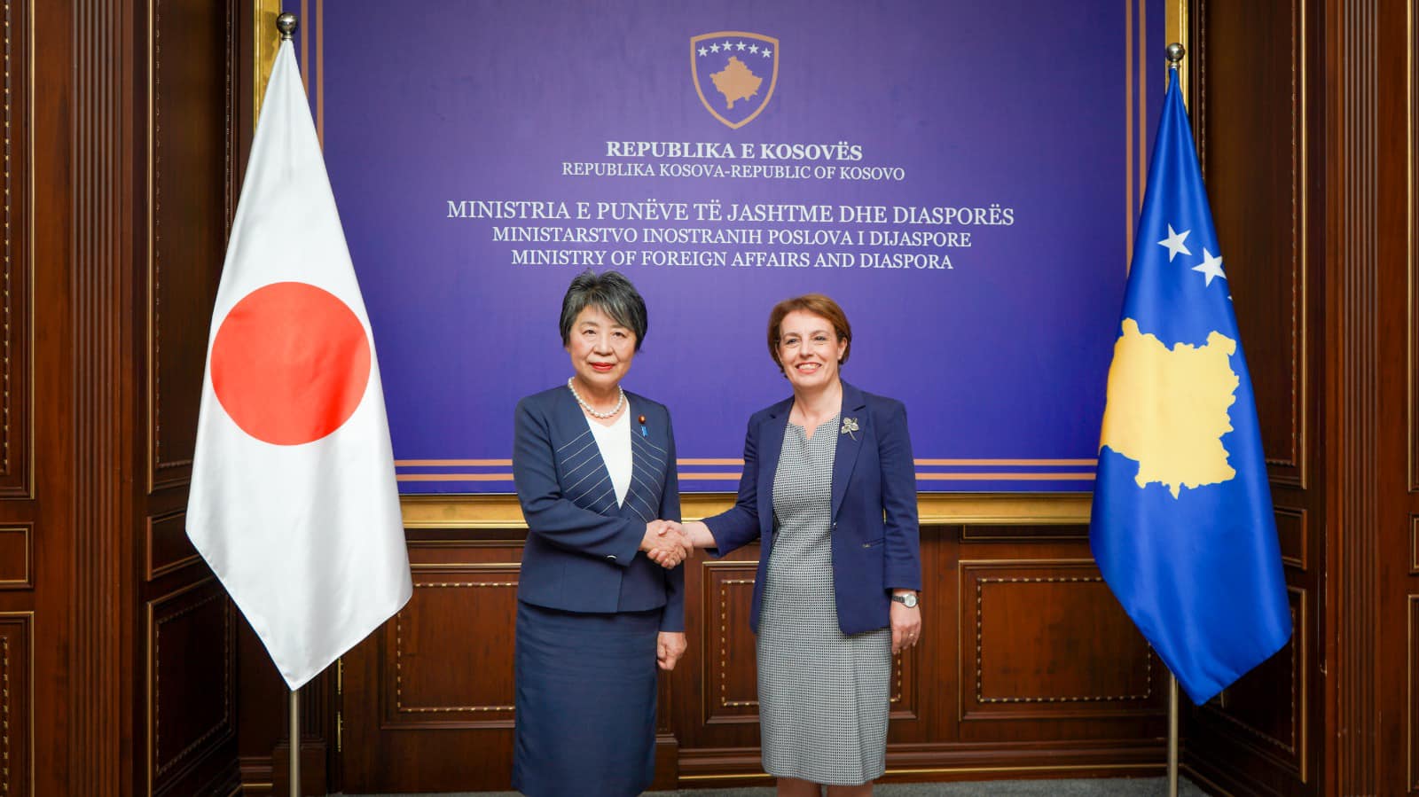 Për herë të parë në historinë e Kosovës së pavarur, sot ka mbërritur në një vizitë zyrtare në Kosovë Ministrja e Punëve të Jashtme të Japonisë, znj. Yoko Kamikawa. Në takimin e realizuar në Ministrinë e Punëve të Jashtme dhe Diasporës, Zëvendëskryeministrja Gërvalla vlerësoi se kjo vizitë e parë e një ministri të jashtëm të Japonisë në Kosovë është një moment historik në zhvillimin dhe fuqizimin e mëtutjeshëm të marrëdhënieve tona ndërshtetërore.