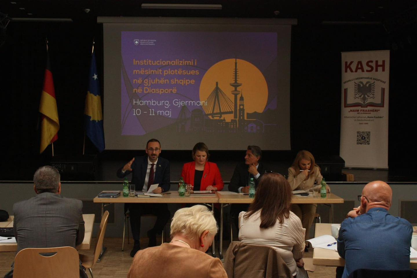 Ministria e Punëve të Jashtme dhe e Diasporës, për herë të parë në nivel federal, ka organizuar në Gjermani punëtorinë me temën “Institucionalizimi i mësimit plotësues të gjuhës shqipe në Diasporë – shembulli i Gjermanisë”. Të ftuar ishin ministrja e Arsimit, e Shkencës, e Teknologjisë dhe e Inovacionit, Arbërie Nagavci; zëvendësministrja e Punëve të Jashtme e Republikës së Kosovës, Liza Gashi, dhe ambasadori i Republikës së Kosovës Faruk Ajeti, të cilët përshëndetën të pranishmit me fjalë rasti. Përgjatë kësaj punëtorie u theksua rëndësia, të arriturat dhe sfidat e mësimit plotësues në gjuhën shqipe vite. Përmes një videomesazhi, të pranishmit i përshëndeti edhe zëvendësministrja për Evropë dhe Punë të Jashtme e Republikës së Shqipërisë, Artemis Malo.