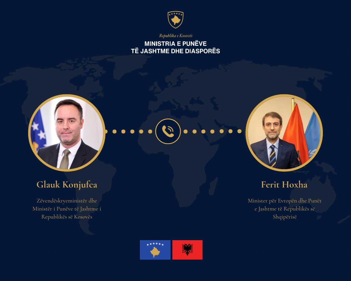 Zëvendëskryeministri i Parë dhe Ministri i Punëve të Jashtme dhe Diasporës, z. Glauk Konjufca, zhvilloi një bisedë telefonike me Ministrin për Evropën dhe Punët e Jashtme të Shqipërisë, z. Ferit Hoxha.